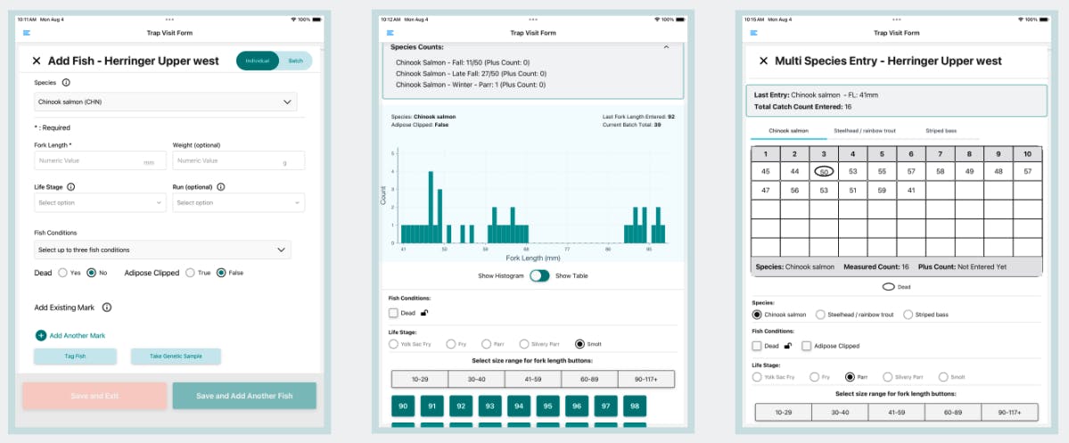 While the original intent and functionality of DataTackle began as a direct solution for fish monitoring programs utilizing Rotary Screw Traps (RST) to collect data that would be used in the SR JPE, the framework and adaptability of the system supports expansion of the application beyond the SR JPE as well as for other equipment types. The form fields and application functionality is dynamic and tailored based on the the requirements of programs and data collection workflows.