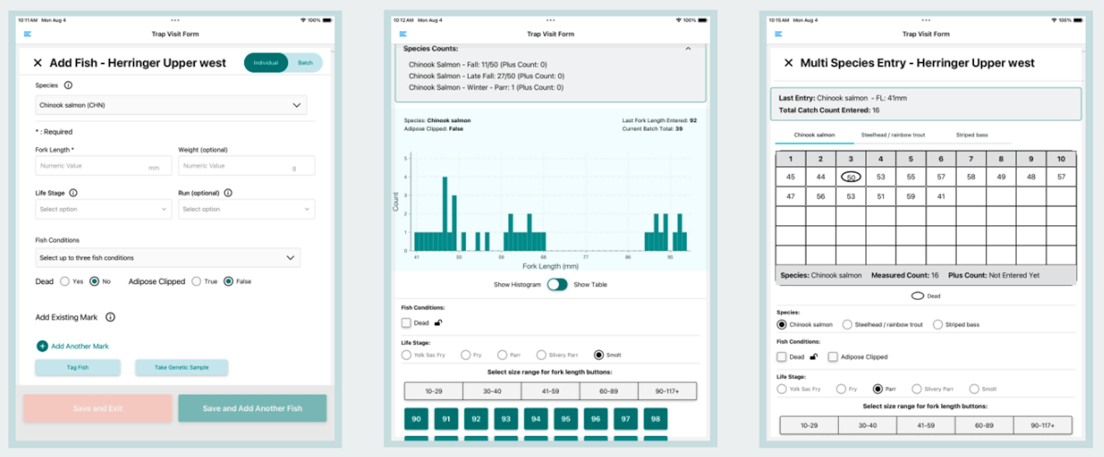 - Data collection functionality and system wide integration of biological and environmental data, efficiency trials, genetic sampling, mark recaptures, permit measurement and take requirements, and more.